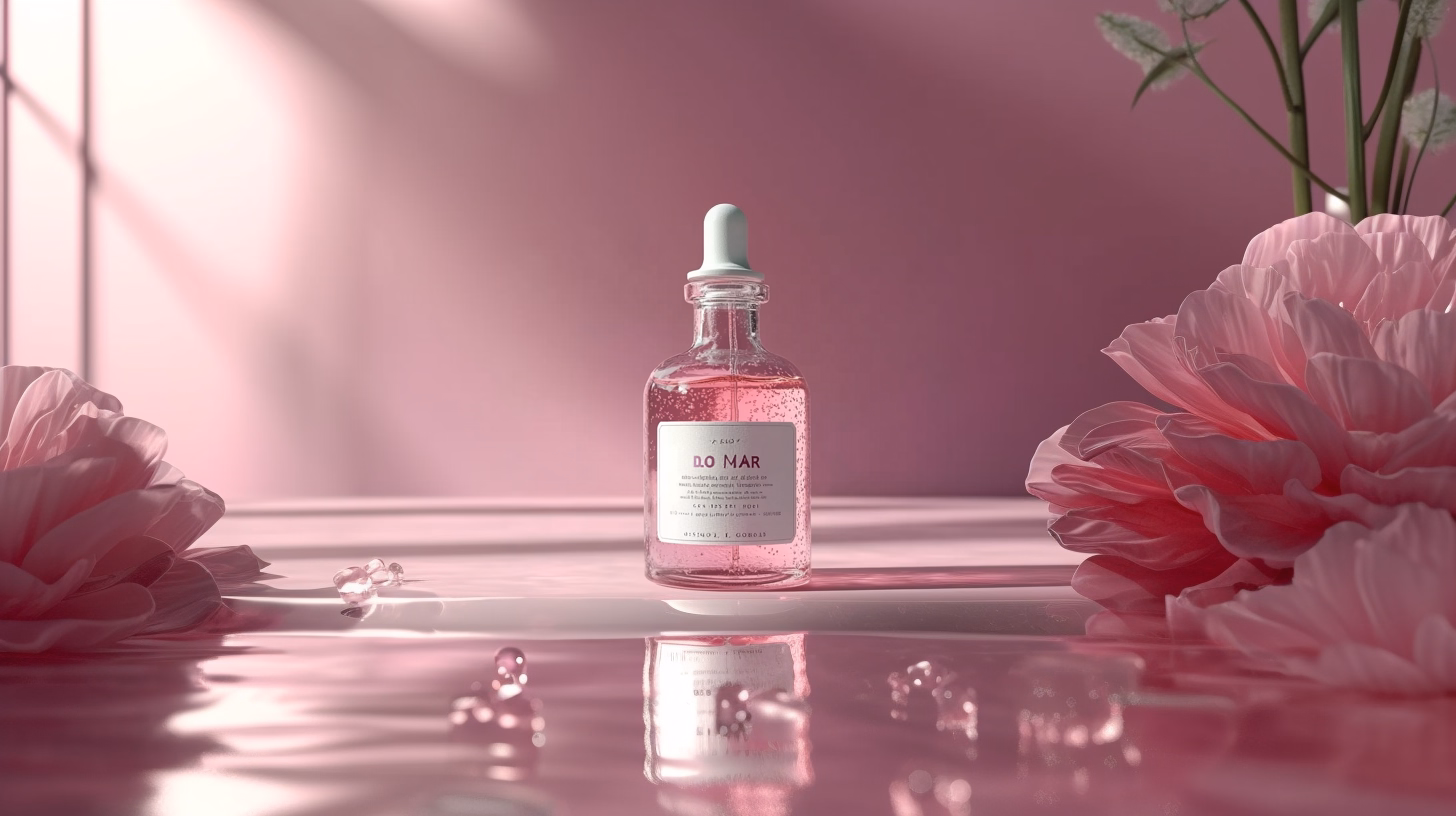 미드저니에 프롬프트를 입력하세요. Fantastic, essential oil bottle, shaped glass bottle, a bottle, designer, light purple background, white label, glass bottle, product rendering